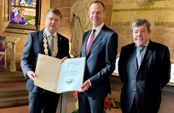 Melanchthon als Geschichtsschreiber und das Lernen aus der Geschichte, um kriegerische Auseinandersetzungen zu vermeiden – diesen Bogen schlugen die weiteren Redner der Festveranstaltung und betonten einmal mehr in diesem Rahmen die Aktualität Melanchthons. Pfarrer Dietrich Becker-Hinrichs, Vorsitzender des Melanchthonvereins, machte deutlich: „Die Geschichte lehrt uns, wie Kriege entstehen und wie schwer sie wieder einzudämmen sind.“ Brettens Oberbürgermeister Martin Wolff erinnerte daran, dass sich Melanchthon stets für den Erhalt des Friedens eingesetzt und viele Kompromisse geschlossen habe. Knut Bühler, der als Erster Landesbeamter den Landrat vertrat, stellte Melanchthons Forderung nach Bildung heraus. Diese sei auch heute die Basis für unsere Demokratie.