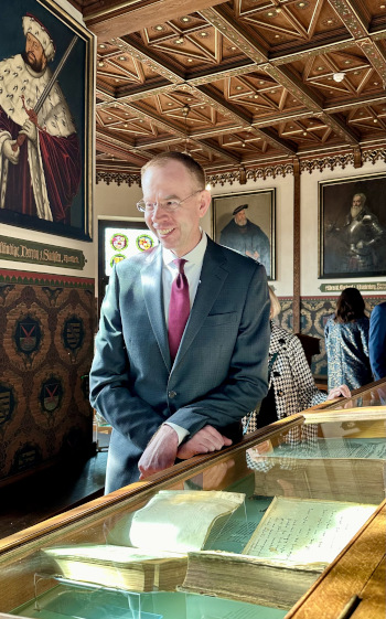 Der Melanchthonpreisträger 2024 weitet den Blick auf Philipp Melanchthon und unterstreicht seine Position als Universalgelehrter und im Besonderen als Geschichtsschreiber. Dr. Mark A. Lotito fesselte bei seinem Festvortrag anlässlich seiner Ehrung im Melanchthonhaus seine Zuhörer. Er schilderte, wie er als Amerikaner mit deutschen Wurzeln dazu kam, sich mit der „Carions Chronik“ und Philipp Melanchthon zu befassen. Natürlich hat es etwas mit seiner Familie zu tun: Sein deutscher Großvater war Professor für Religionsgeschichte. Hinzu kam seine Schulausbildung, die er an einer Lutherischen Schule absolvierte, wo er in Latein, Deutsch und Theologie unterrichtet wurden. Aber es scheint am Ende eine Reise nach Wittenberg gewesen zu sein, die ihn zu seinem Thema für seine Dissertation führte, deren Veröffentlichung nun als wertvoller Beitrag zur Melanchthon-Forschung mit dem Preis der Stadt Bretten ausgezeichnet wurde. Eine Ausgabe von „Carions Chronik“ lag dort im Wittenberger Melanchthonhaus in der Vitrine, sie machte ihn neugierig und stieß seine Untersuchungen an, die ihn rund 20 Jahre später zu dieser Feierstunde ins Melanchthonhaus Bretten führten.