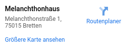 Mit dem Auto: A5 bis Ausfahrt Bruchsal, von dort die B35 nach Bretten (ca. 20 km) oder die A5 bis Ausfahrt Karlsruhe, dann die B293 (ca. 25 km). Oder die A8 bis Ausfahrt Pforzheim-Nord, dann die B294 bis Bretten (ca. 15 km).