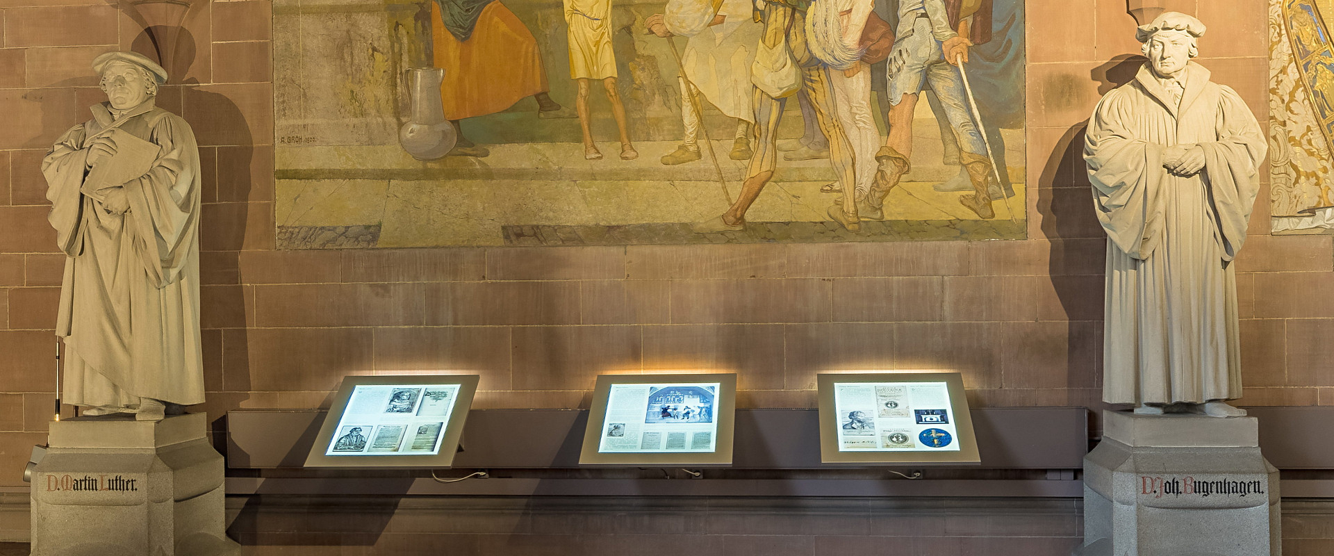 Hundert Jahre später stellten sich neue Herausforderungen. Für die Besucherinnen und Besucher des Melanchthonhauses sollten weitere didaktisch aufbereitete Informationen bereitgestellt werden. Zugleich sollte mehr Raum für Exponate geschaffen werden. Moderne Beleuchtungstechniken sollten zudem dafür sorgen, die Komposition und die Exponate des Museums besser „ins Licht zu rücken“.