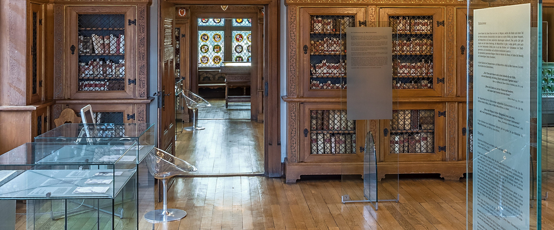 - Die Präsentation der Exponate in den historischen Vitrinen des Fürstenzimmers auf beleuchteten, mattierten Glasflächen.