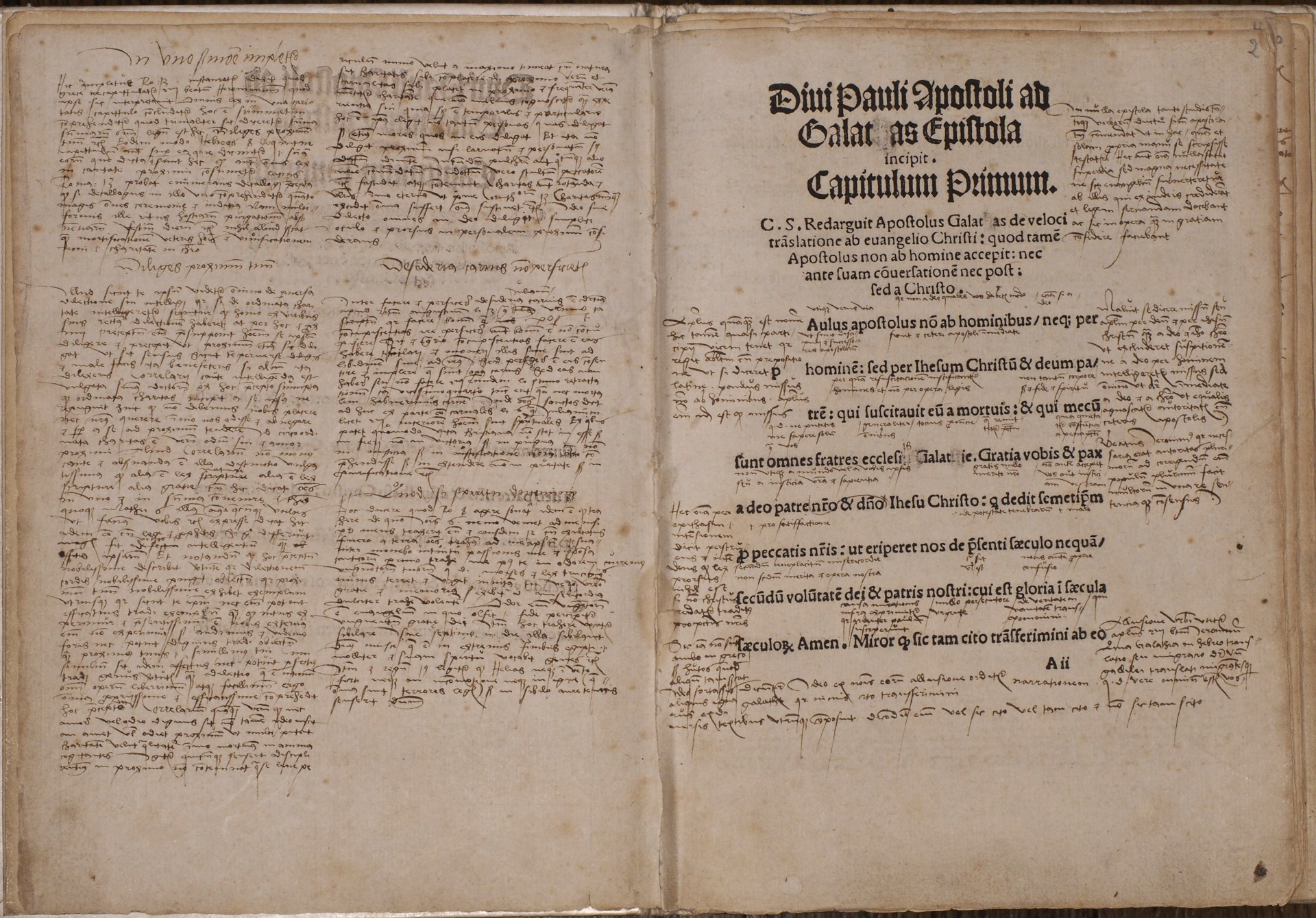 Epistel des Paulus an die Galater, Wittenberg 1516. Das Buch wurde mit großem Zeilenabstand und breitem Rand speziell für studentische Mitschriften gedruckt.