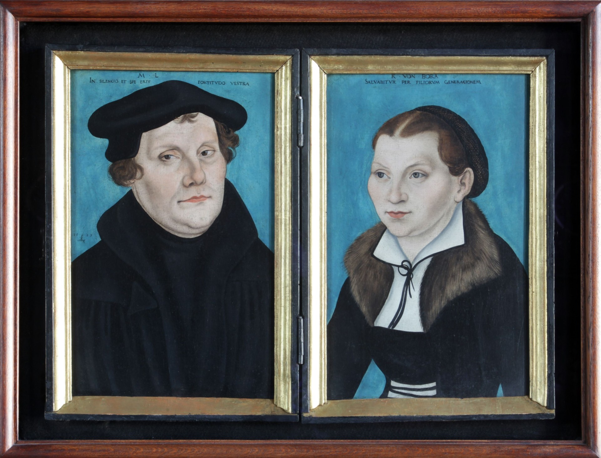 Im Jahr 1525 heiratete Martin Luther die ehemalige Nonne Katharina von Bora. Lukas Cranach d.Ä. schuf danach in Tempera und Öl auf Rotbuchenholz ein Doppelporträt, das schon bald zum Idealbild eines protestantischen Pfarrerehepaars wurde. Das Diptychon wurde in der Folgezeit oft kopiert und gelangte als Schenkung fürstlicher Auftraggeber in viele protestantische Kirchen und Gemeinden.