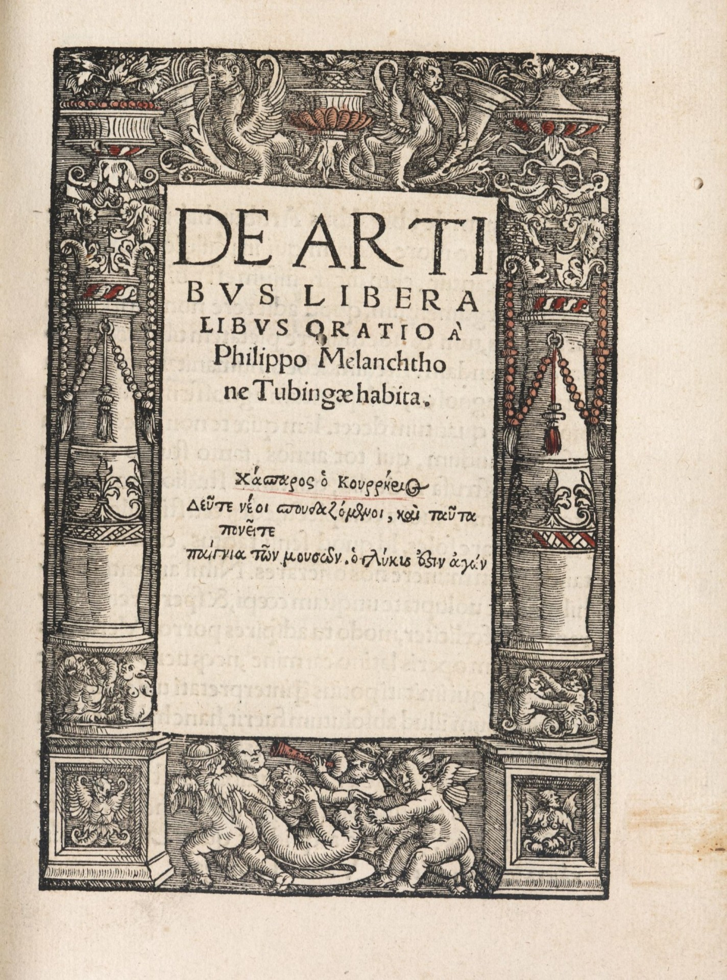 De artibus liberalibus oratio. Hagenau 1518. Schon in seiner ältesten erhaltenen Rede, die er im Wintersemester 1517 in Tübingen hielt, erweiterte Melanchthon die sieben freien Künste um die Fächer Geschichte und Poesie. Diesem erweiterten humanistischen Bildungskanon wurden die neun Musen der klassischen Mythologie zugeordnet.