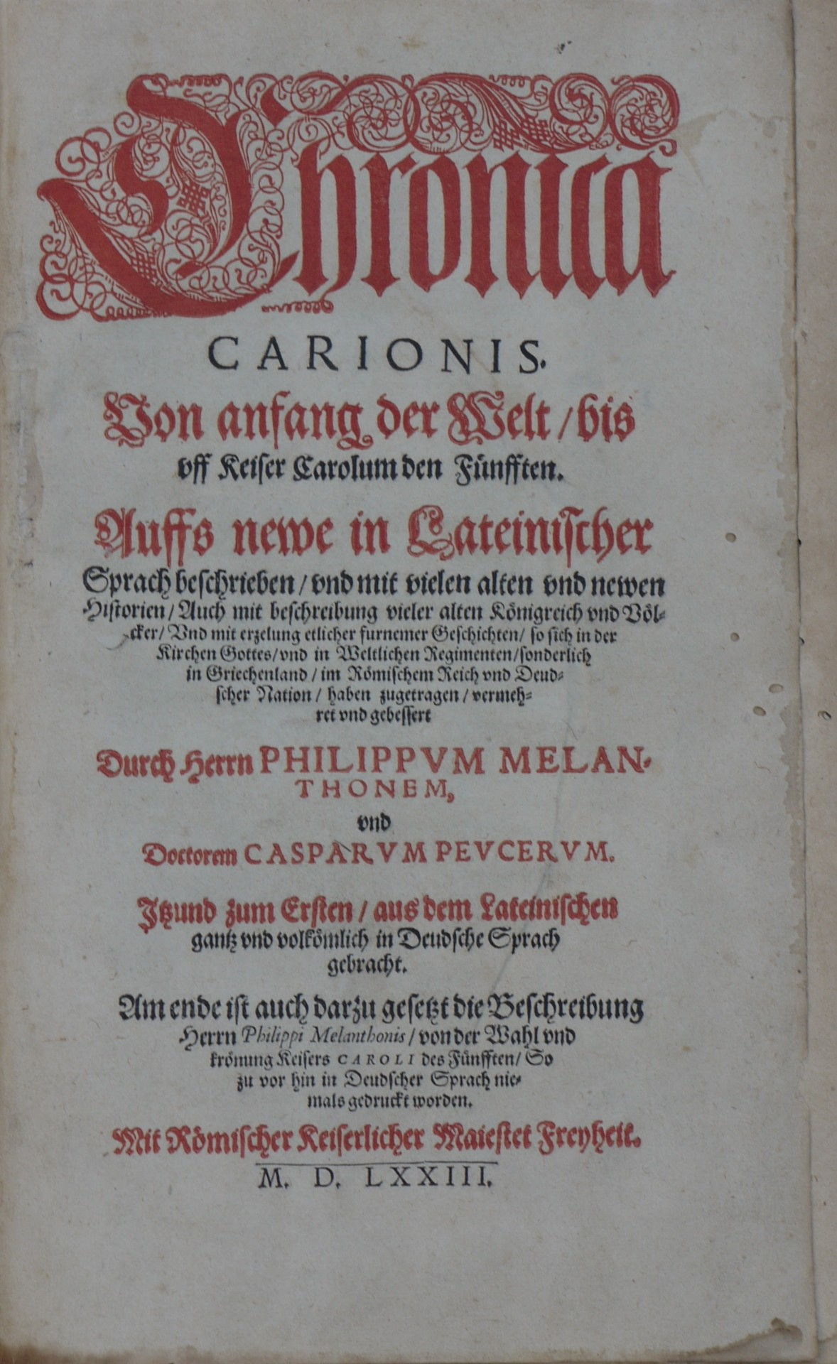 Chronica Carionis. Vom Anfang der Welt bis Kaiser Karl V. (1573).